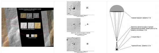 В недавнем прошлом, в ноябре 2007 года со станции Mars Reconnaissance Orbiter был сделан снимок области кратера Птолемея, где предположительно должен был находиться «Марс-3». Фотография была сделана установкой HiRISE, которая делает снимки со «слегка» большим разрешением, чем современные смартфоны. Изображение получилась размером примерно в 1,8 миллиардов пикселей, что примерно равно 2500 «обычных» фотографий. Понятное дело, что поиски были довольно трудоемкими. И вот недавно, Виталий Егоров, основатель сообщества ВКонтакте, посвященного марсоходу Curiosity, при поддержке членов сообщества, обнаружил части межпланетной станции: парашют, тепловой щит, тормозные двигатели и, собственно, сам модуль. 11 апреля эти данные были подтверждены NASA.
